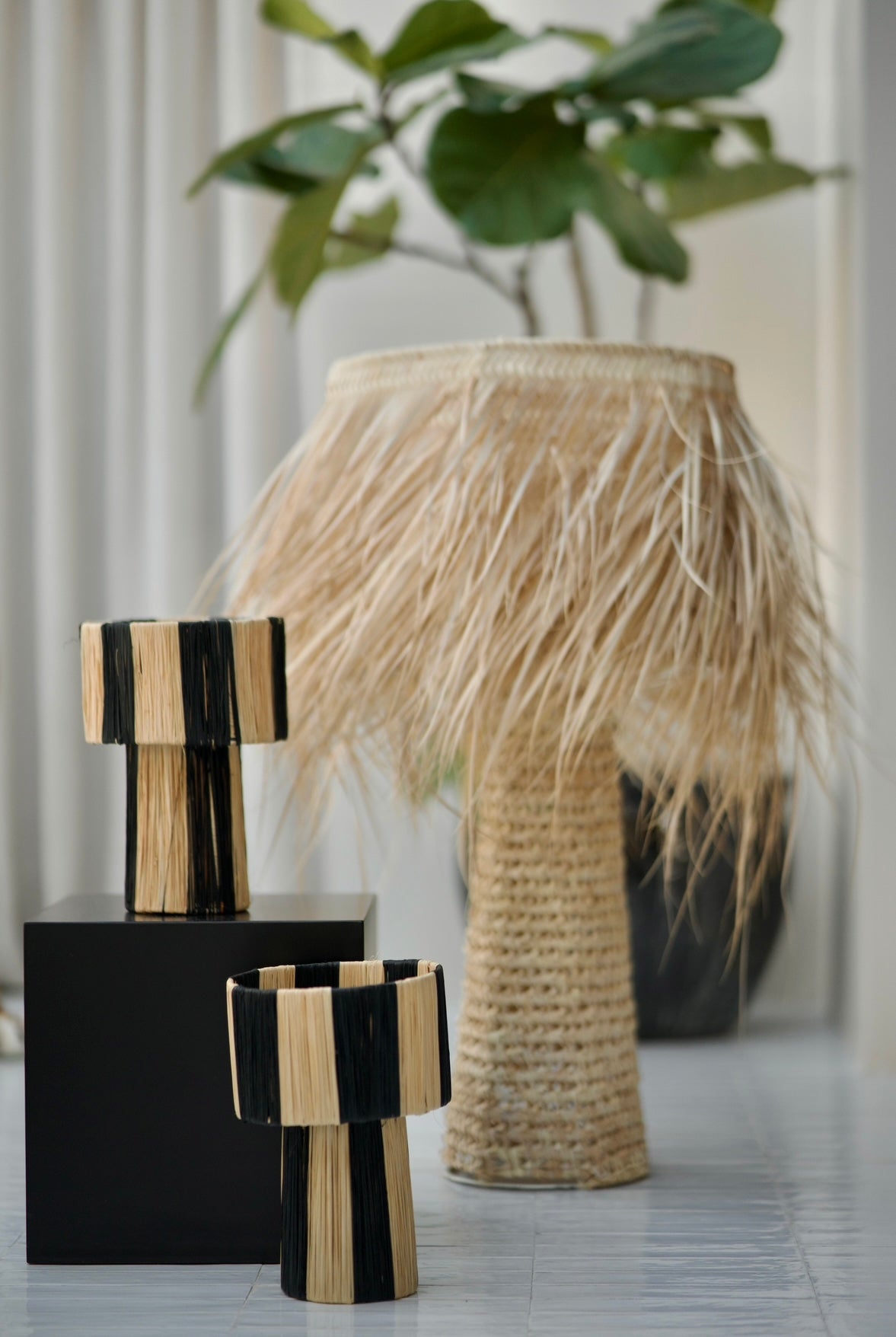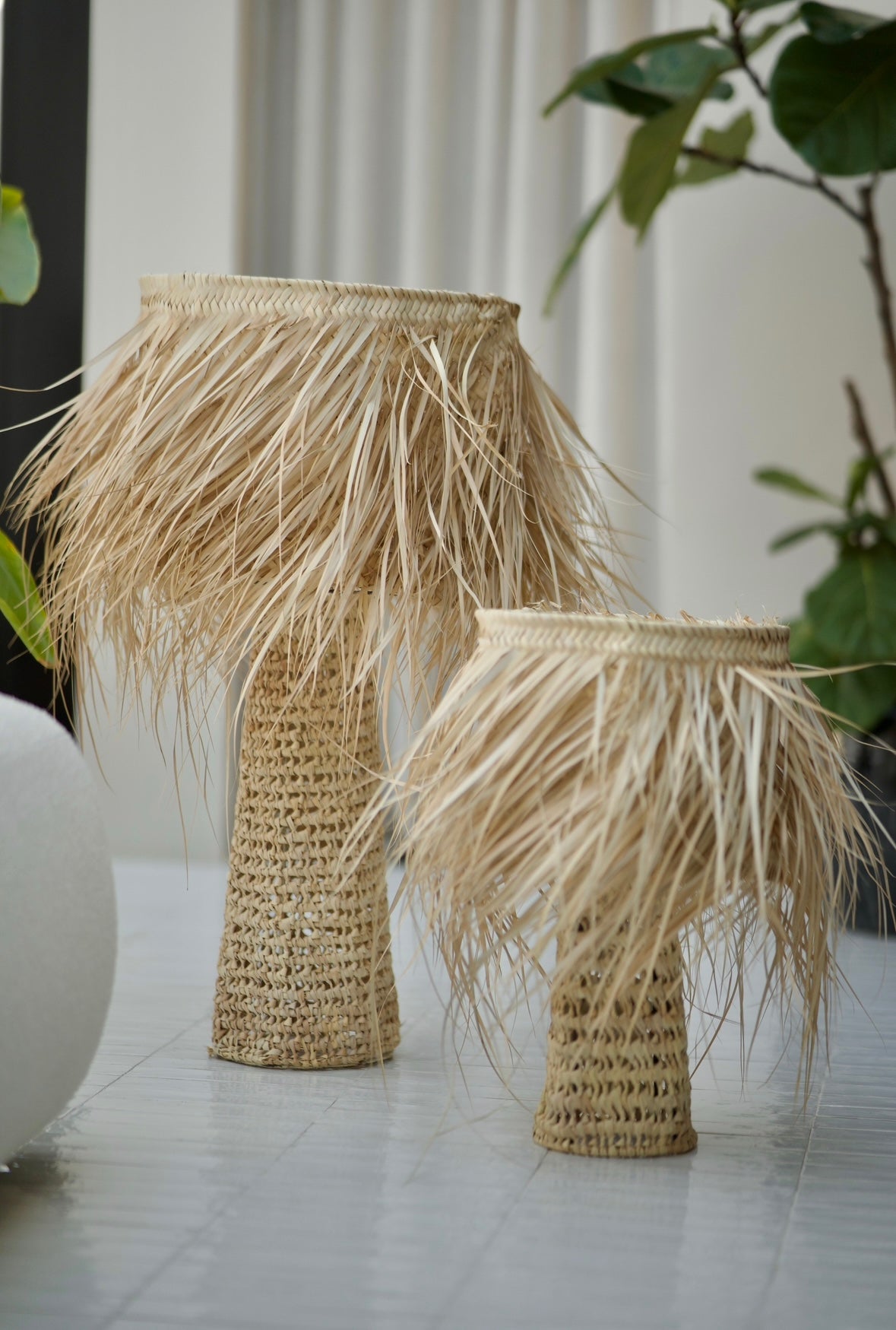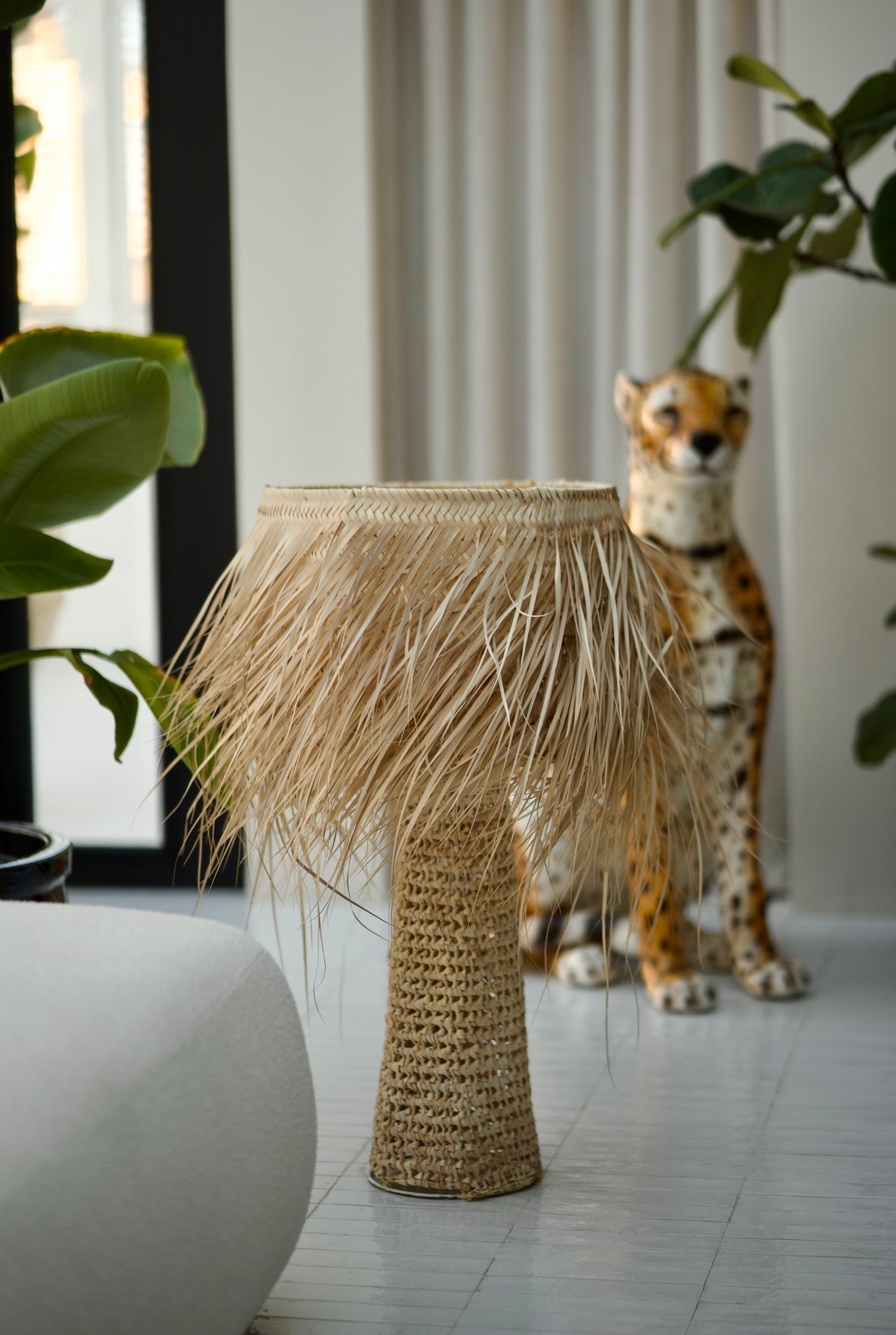 Lampade realizzate in Rafia natutale, intrecciate rigorosamente a mano dai nostri artigiani. Questa lampada da tavolo o da terra è un accessorio perfetto per tutti gli interni mantenuti in stile Boho. Realizzata in rafia, aggiunge un tocco di naturalezza a qualsiasi spazio. Perfetta in ogni tuo spazio, dalla camera da letto al soggiorno.